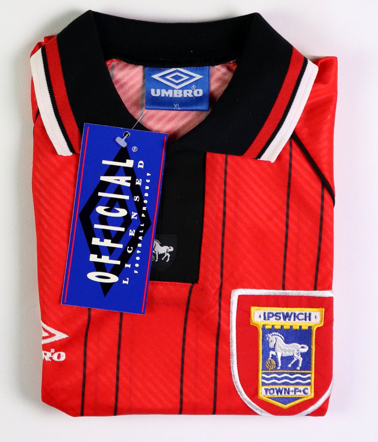 Note: Storica maglia Ipswich,ultima  firmata umbro, prima del declino del club nella seconda metà anni 90.