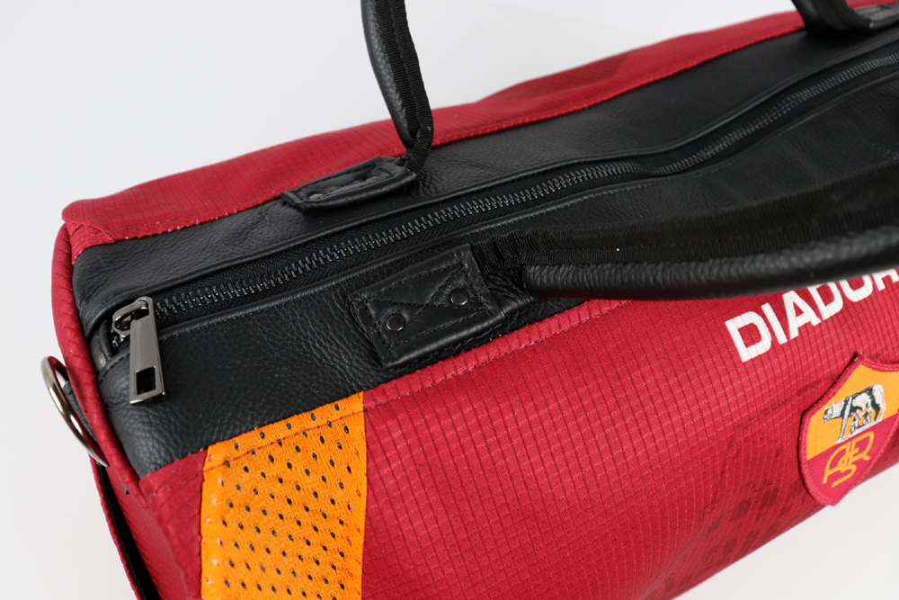 • Struttura e tasche esterne realizzate con la maglia originale As Roma 1997-98.