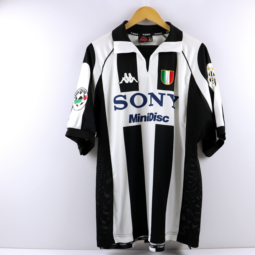 Dettagli: Logo Juventus, kappa e scudetto ricamati. Sponsor Sony Minidisc stampato nel tessuto. Numero stampato nel tessuto ( in trama ), nome plastica, applicato. Patch lega calcio sulla manica destra. Maglia Juventus indossata da Daniel Fonseca nella partita Juventus vs Fiorentina del 5 ottobre 1997