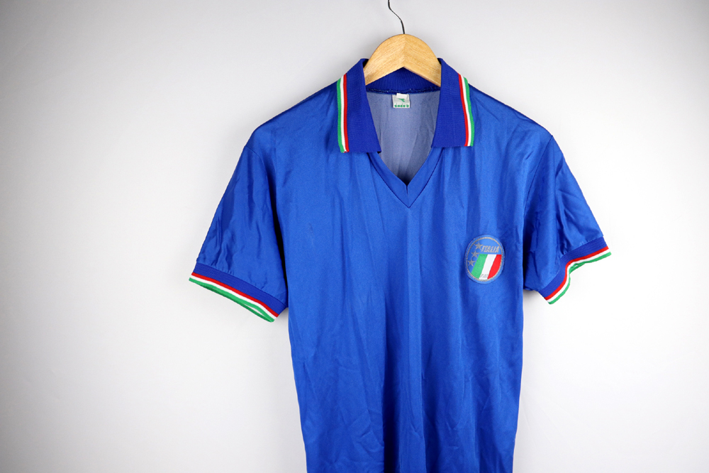 Note: Storica maglia nazionale italiana, versione player, come quella utilizzata nel mondiale 1986 ed europeo 1988 e mondiali di Italia90