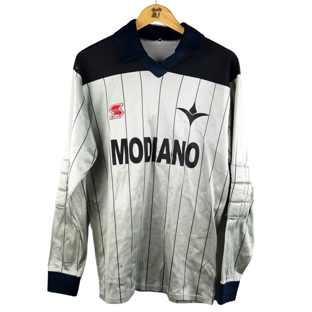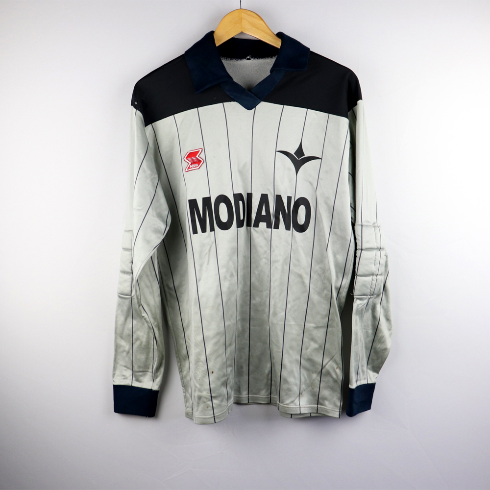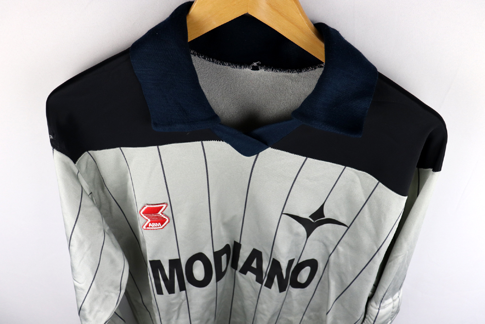 Dettagli:  Logo Abm cucito. Logo Triestina, numero e sponsor Modiano applicati. Maglia indossata dal secondo portiere della Triestina nella stagione 1988/89