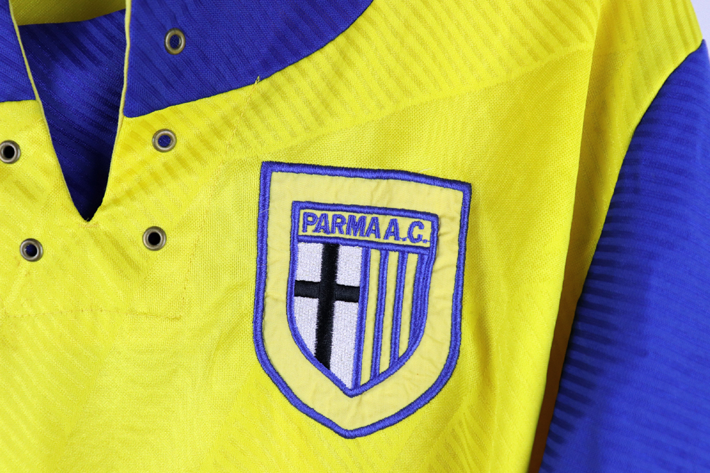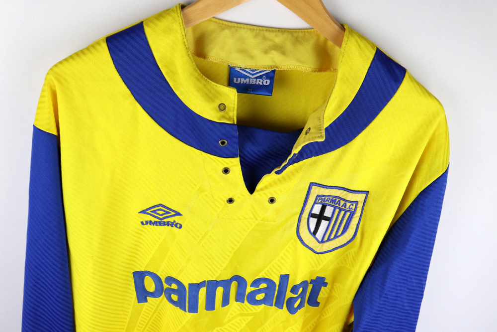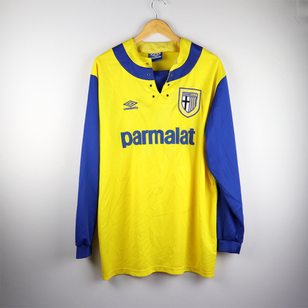 Dettagli: Loghi Umbro e Parma ricamati. Numero in flock applicato a caldo.  Maglia Parma indossata durante la stagione 1993-94. La maglia a maniche lunghe non è stata mai commercializzata.