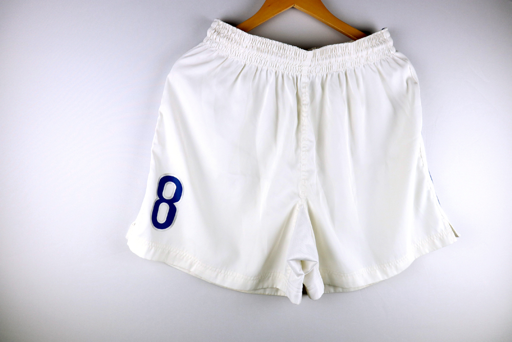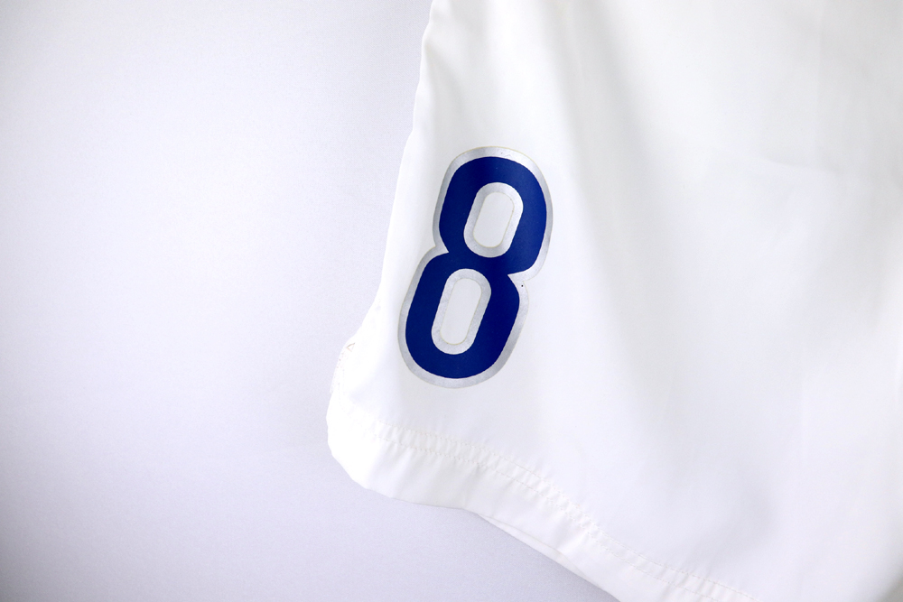 Dettagli: Numero applicato. Pantaloncini Italia preparati/indossati per le partite di qualificazione ad euro 2000. Il numero 8 è stato utilizzato prevalentemente da Demetrio Albertini.