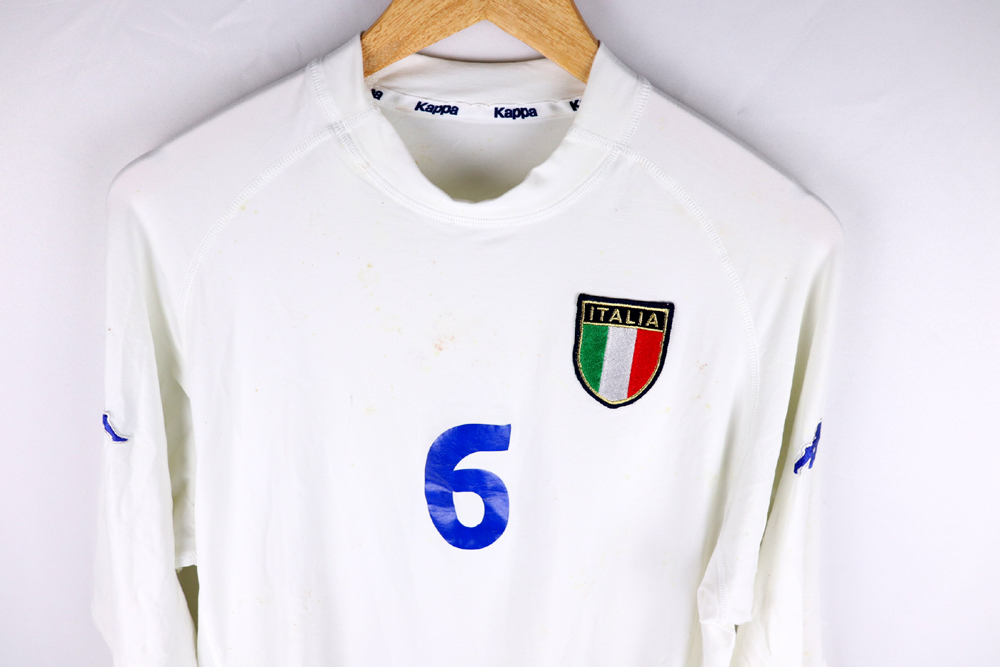 Dettagli: Logo Italia ricamato. Numero 6 applicato, in plastica. Composizione tessuto 87% Nylon, 13% lycra. Maglia Italia indossata da Alessandro Nesta nella partita amichevole contro il Giappone del 7 novembre 2001