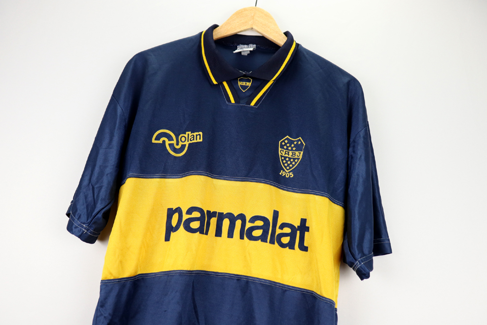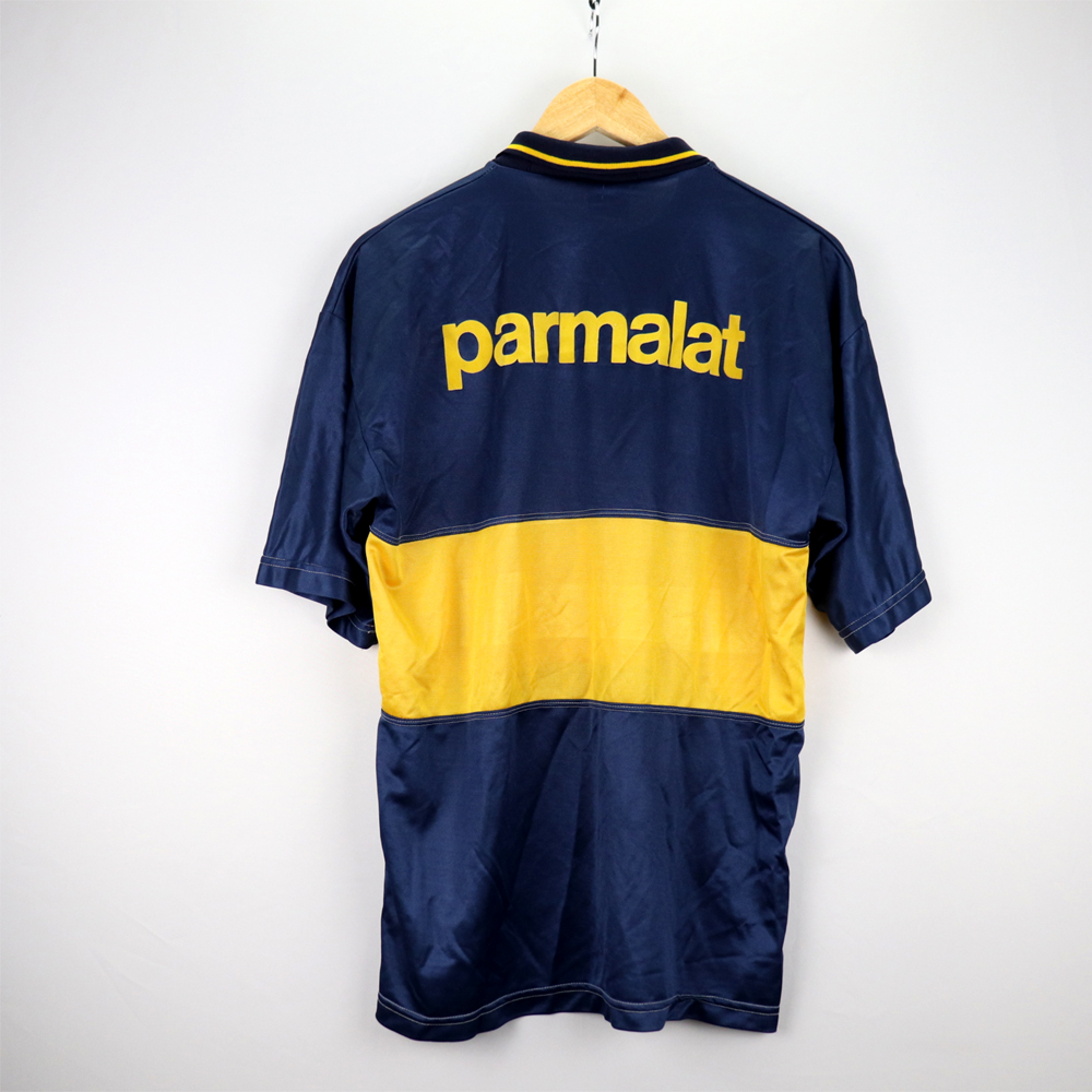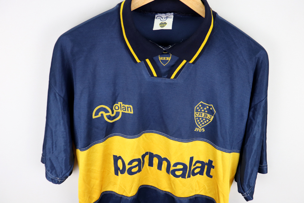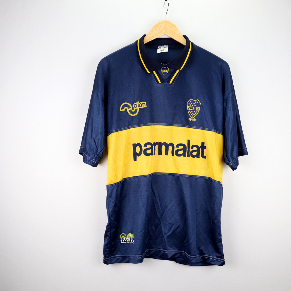 Dettagli: Logo Olan, Boca e sponsor Parmalat applicati in flock. Maglia in eccellenti condizioni. Taglia 40.  Da ascella ad ascella 52 cm. Lunghezza 72 cm.