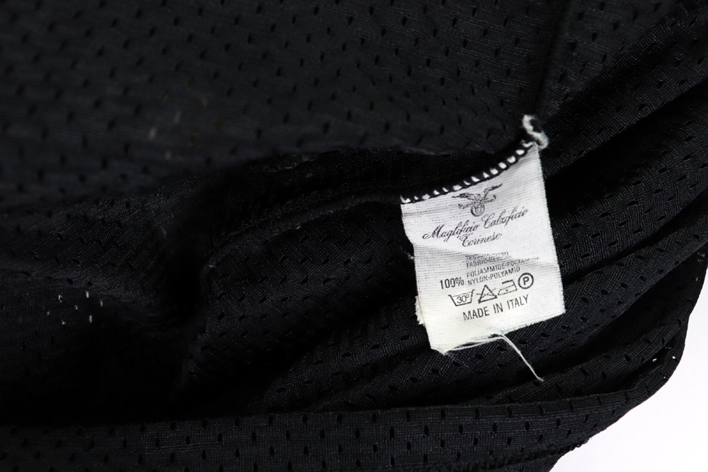 Note: Nella stagione 1990-91 la Juventus presenta un’inedita divisa da trasferta di colore nero. Per la prima parte della stagione la maglia nera è proposta in un particolare materiale traforato, già sperimentato dalla Juventus con la maglia da allenamento fornita dalla Kappa per il ritiro pre-campionato. La maglia nera traforata è salutata dai tifosi con grande entusiasmo, costituendo il capo più venduto del merchandising. In particolare il modello con la coccarda verde è come quello utilizzato dai bianconeri nella trasferta di cesena del campionato 90-91.