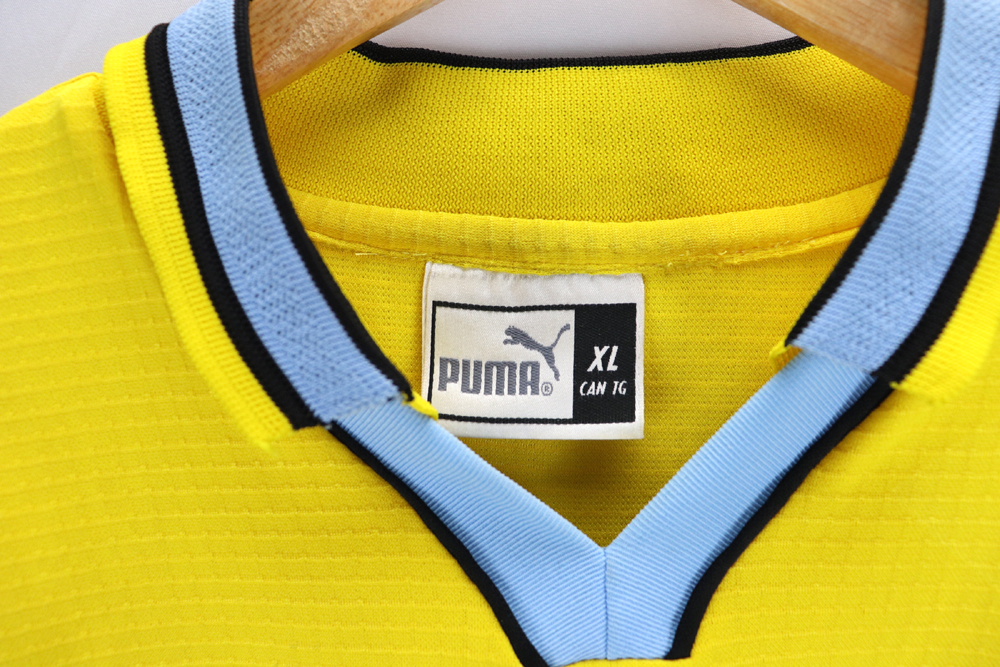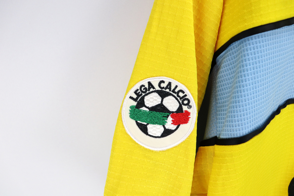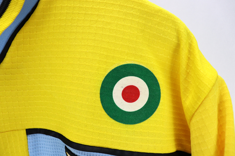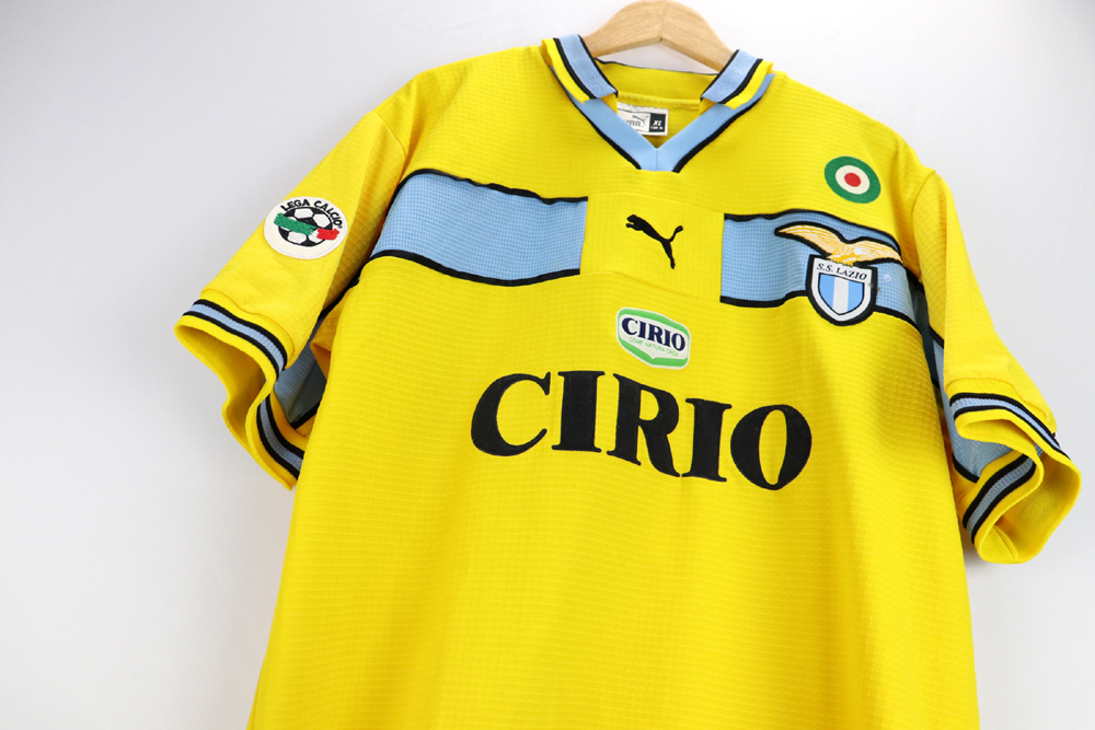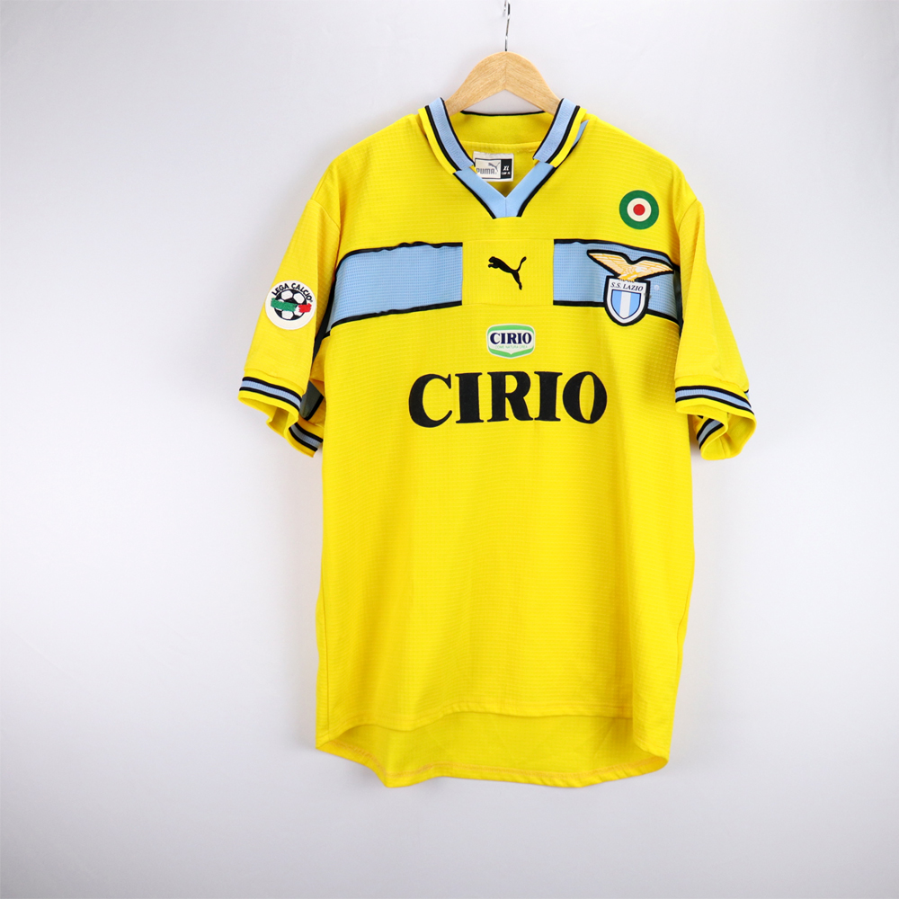 Dettagli: Loghi Puma e sponsor Cirio in flock, applicati. Logo Lazio ricamato. Nome-numero in flock, applicati. Patch lega calcio sulla manica destra.  Maglia gara Lazio preparata per Roberto Mancini per la stagione 1998-99. Le maglie indossate/match worn non presentano la targhetta "Puma official merchandise" in basso a destra, sul fronte della maglia.