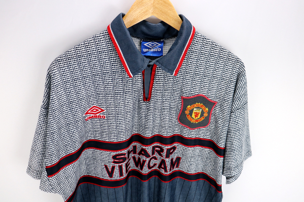 Note: Entrata nella storia dei Red Devils il 13 aprile 1996 nella partita contro il Southampton come "l'infausta maglia". Alla fine del primo tempo i giocatori si lamentarono con l'allenatore Ferguson di non vedere bene i compagni di squadra a causa dei colori delle proprie magliette. Nel secondo tempo il Manchester entrò in campo con la terza maglia blu e bianca