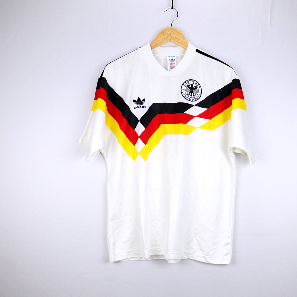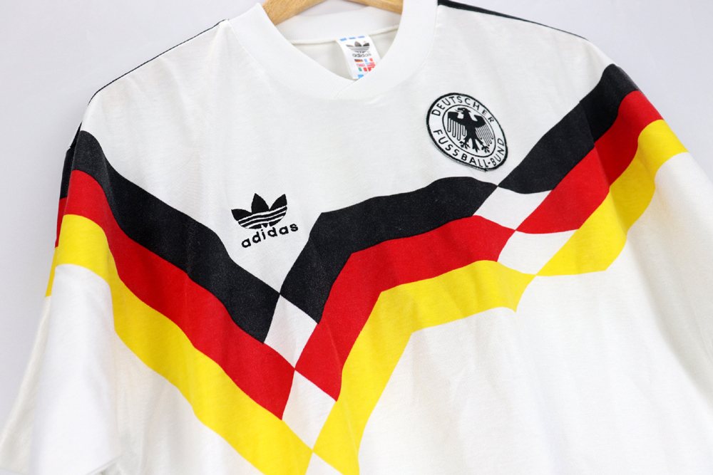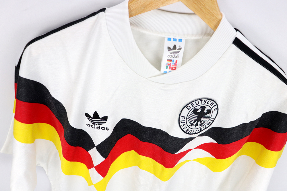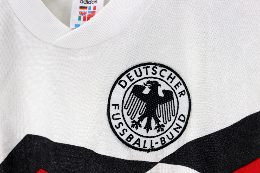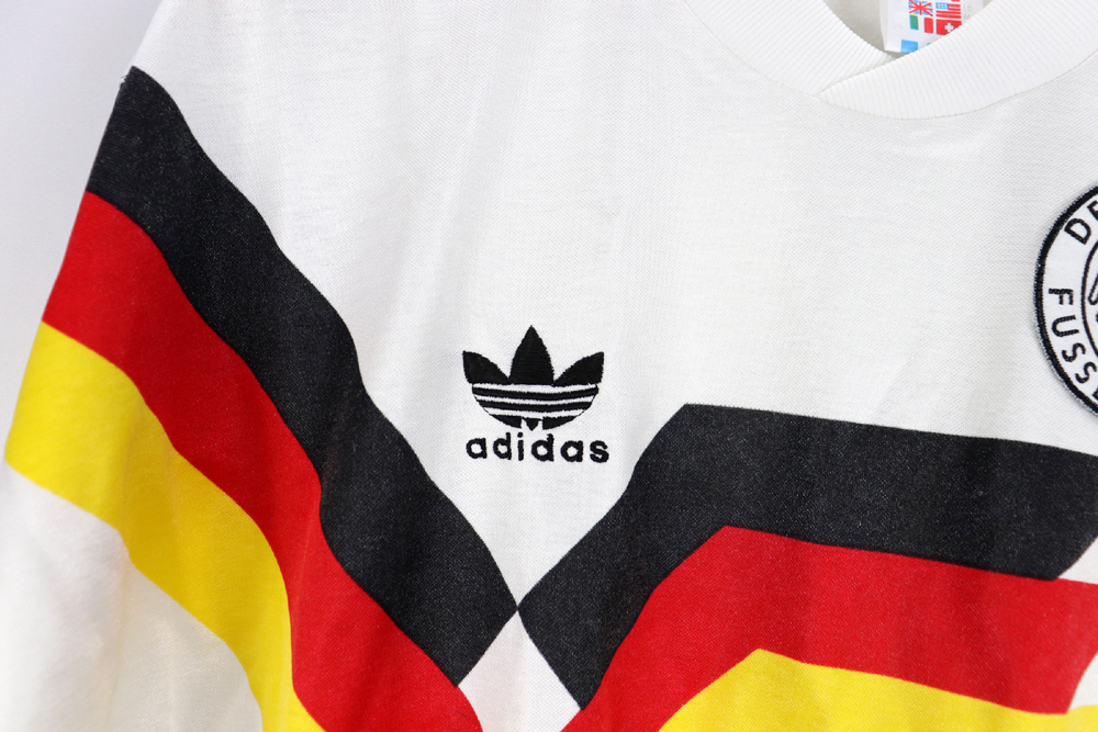 Note: Forse la maglia più bella di tutti i tempi, rarissima e preziosa. Utilizzata dalla Germania negli europei del 1988 e nel mondiale vinto di Italia 90, sconfiggendo in finale l'Argentina di Diego Armando Maradona. Un cult!