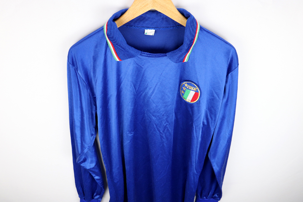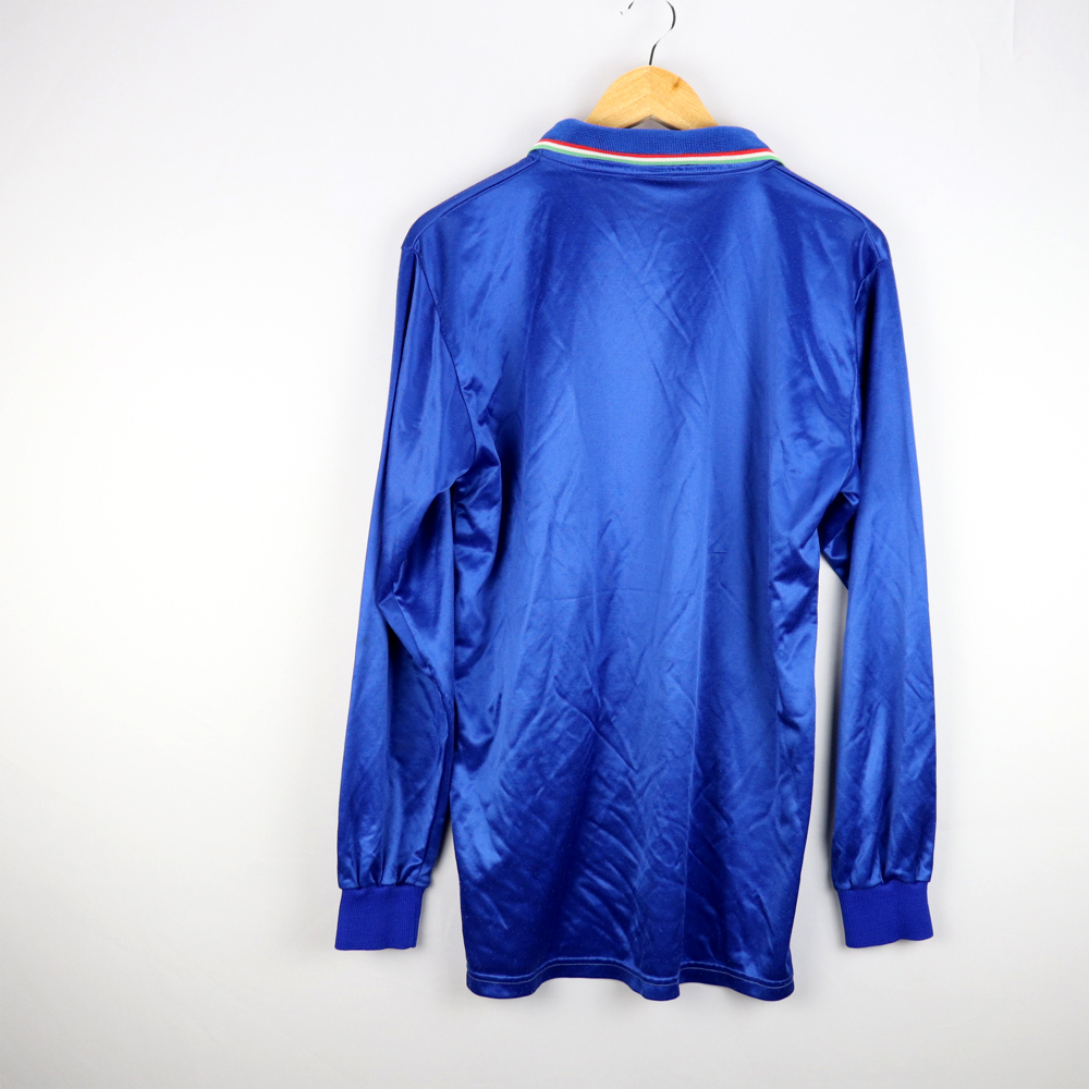 Dettagli: Logo FIGC cucito. Maglia in eccellenti condizioni. Rara versione a maniche lunghe, senza logo diadora, come qualla utilizzata dai giocatori della nazionale.