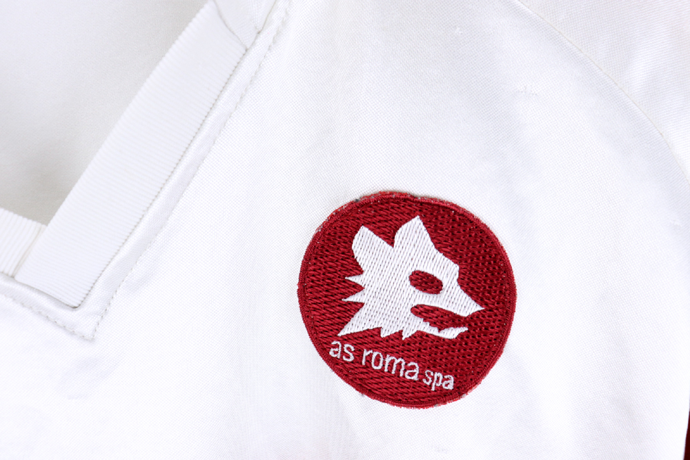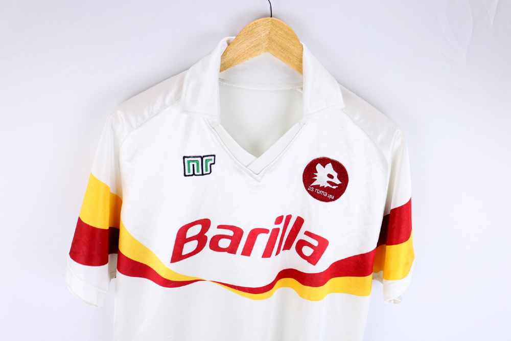 Note: Maglia storica As Roma da trasferta, caratterizzata dal disegno con onda giallorossa e indossata in coppa uefa contro il benfica