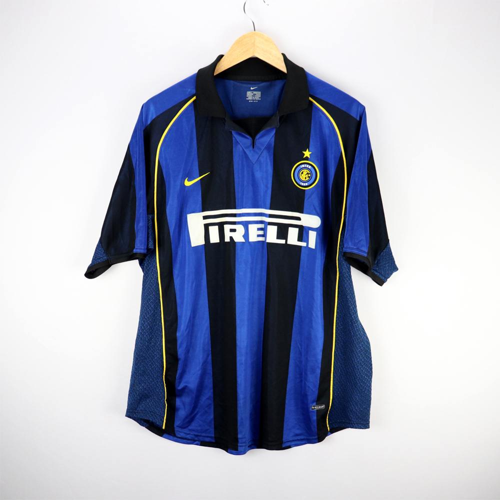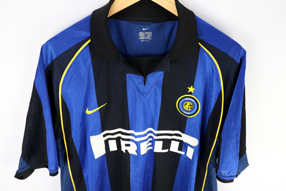 Note: Storica maglia Inter passata alla storia per le lacrime di Ronaldo e la sconfitta del 5 maggio 2002 contro la Lazio, che determinò la perdita dello scudetto all'ultima giornata di campionato