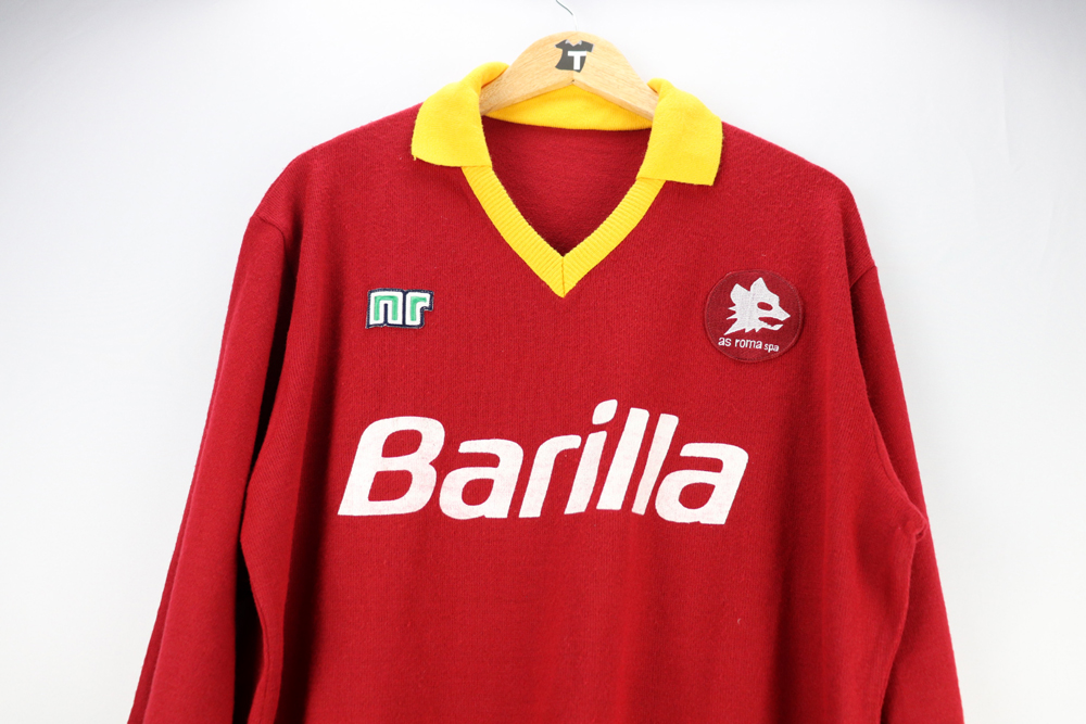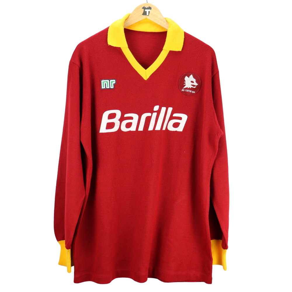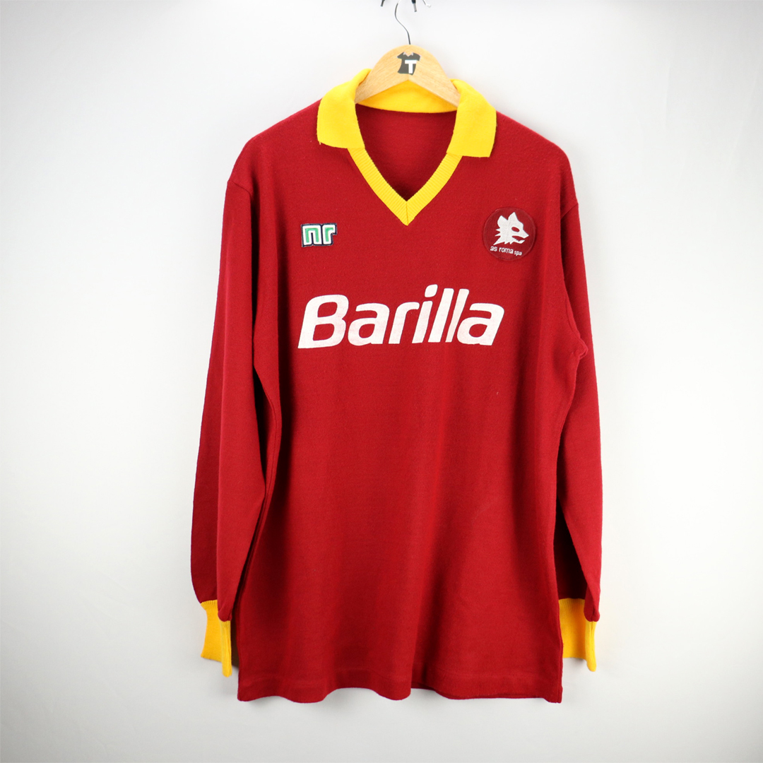 Dettagli: Logo Ennerre e As Roma cuciti. Sponsor Barilla serigrafato ( vernice bianca ). Numero con cucitura a zig-zag.  Maglia originale As Roma, in acrilico pesanteindossata/preparata per la stagione 1989-90. Il numero 5 è stato utilizzato prevalentemente da Antonio Tempestilli