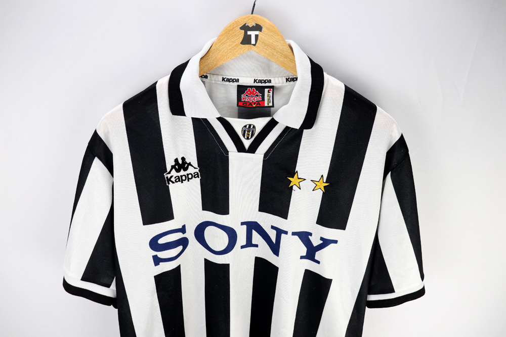 Note: Storica maglia Juventus indossata dai bianconeri nella trionfale stagione 1996-97 ( girone d'andata ), conclusa con la vittoria dello scudetto, della coppa intercontinentale e della supercoppa europea.