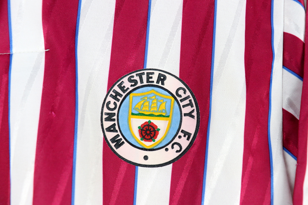 Dettagli: Stemma Manchester City, logo Umbro applicati. Maglia in eccellenti condizioni.