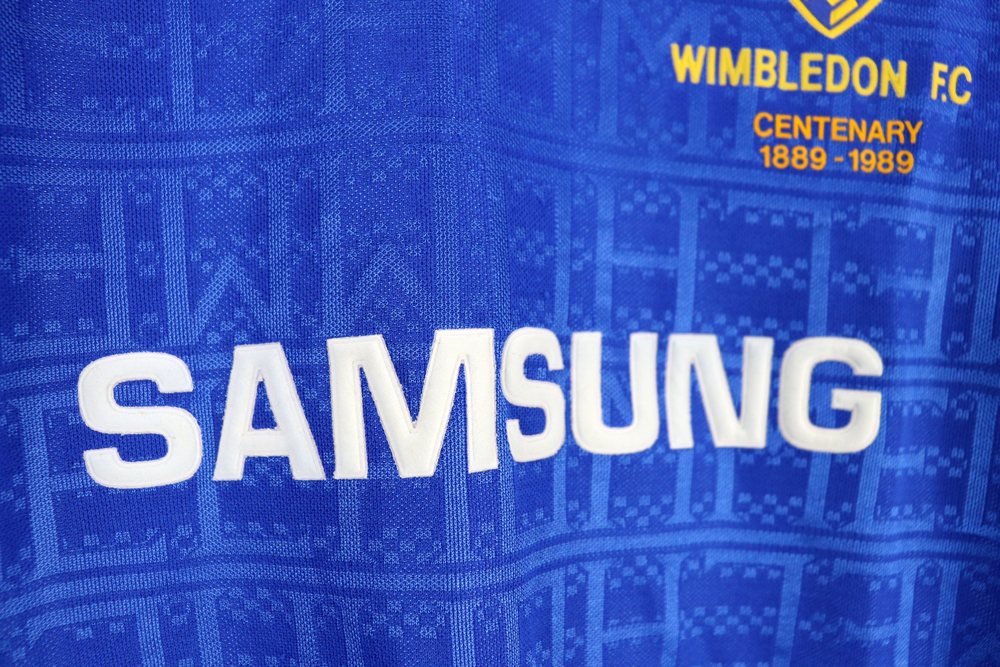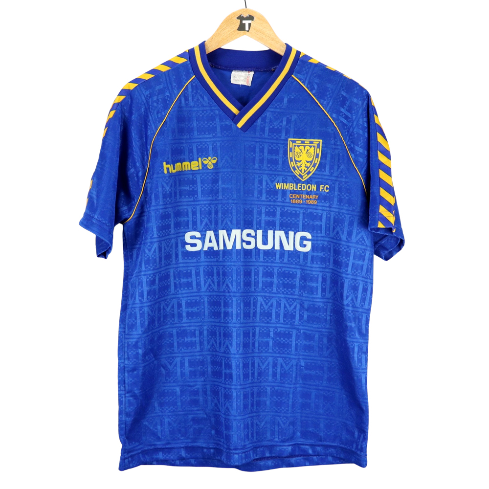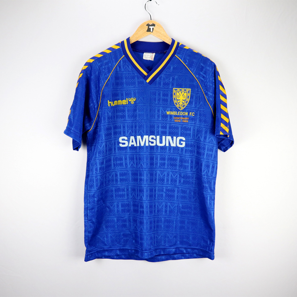 Dettagli: Logo Hummel, stemma Wimbledon FC e sponsor Samsung applicati in gomma. Centenary 1889-1989. Maglia in eccellenti condizioni.