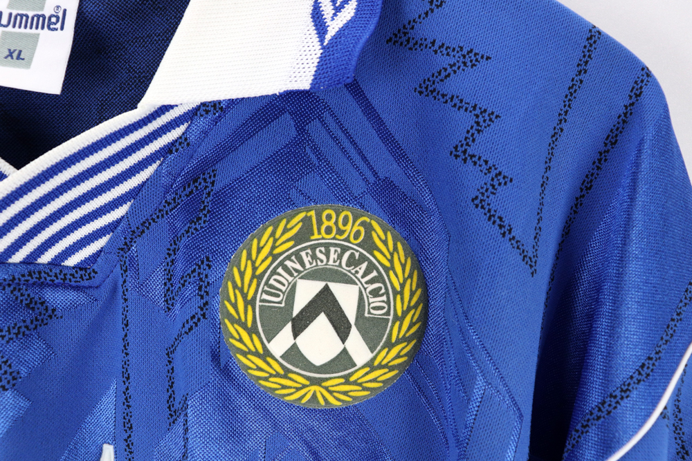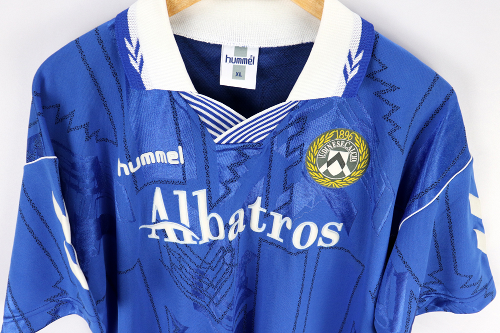 Dettagli: Stemma Udinese, Hummel e sponsor Albatros applicati in flock. Maglia in condizioni pari al nuovo