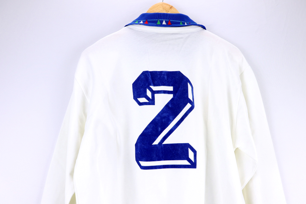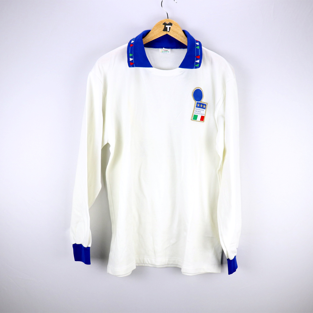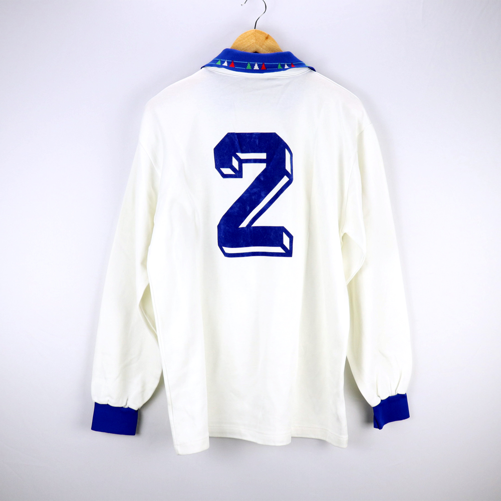 Dettagli: Logo FIGC cucito. Maglia in  eccellenti condizioni. Numero applicato in flock. Maglia gara preparata/indossata per le partite di qualificazioni ai mondiali di Usa 94. Il numero 2 è stato utilizzato da Moreno Mannini. Gli azzurri hanno giocato solo 3 partite in trasferta con questa modello Diadora ( collo azzuro con intarsi tricolori): contro San Marino, Scozia ed Estonia.