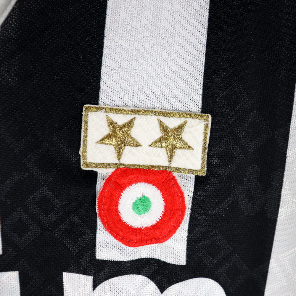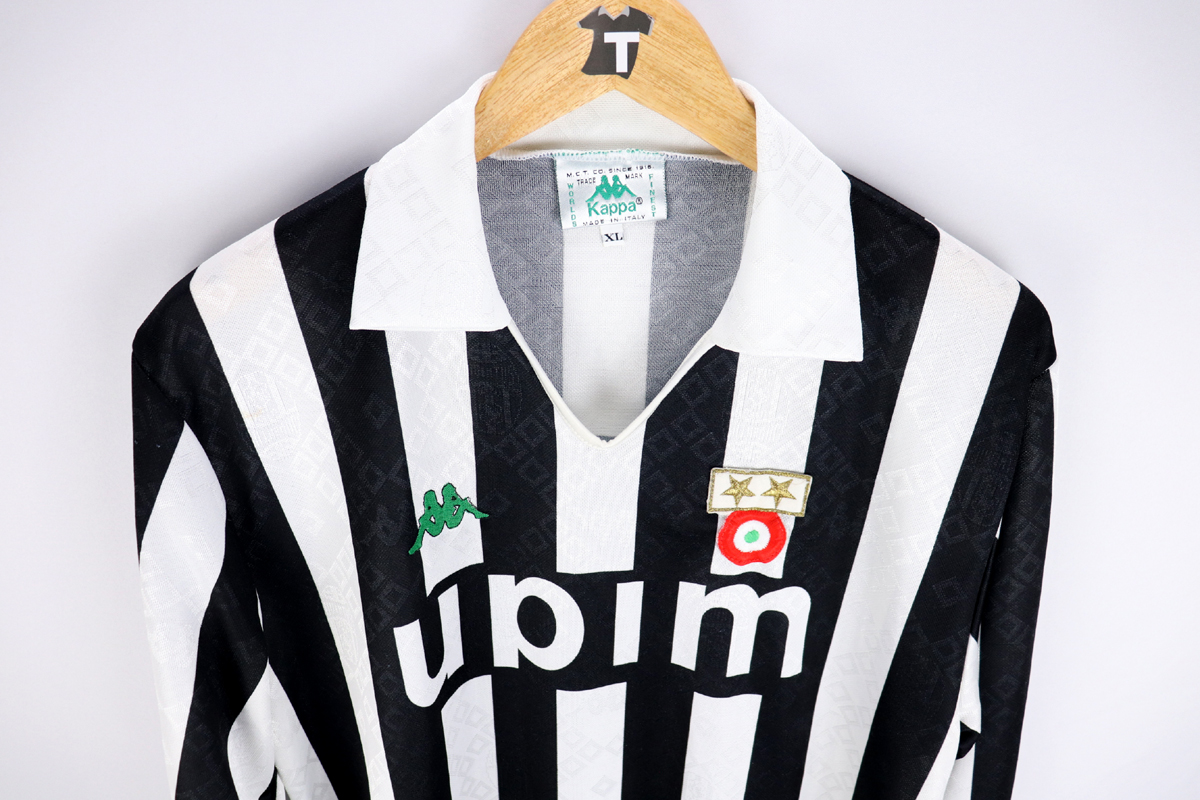 Dettagli: Logo kappa ricamato. Sponsor Upim stampato nel tessuto. Coccarda e stelle cucite. Maglia in eccellenti condizioni. Da ascella ad ascella 55 cm. Lunghezza 75 cm.