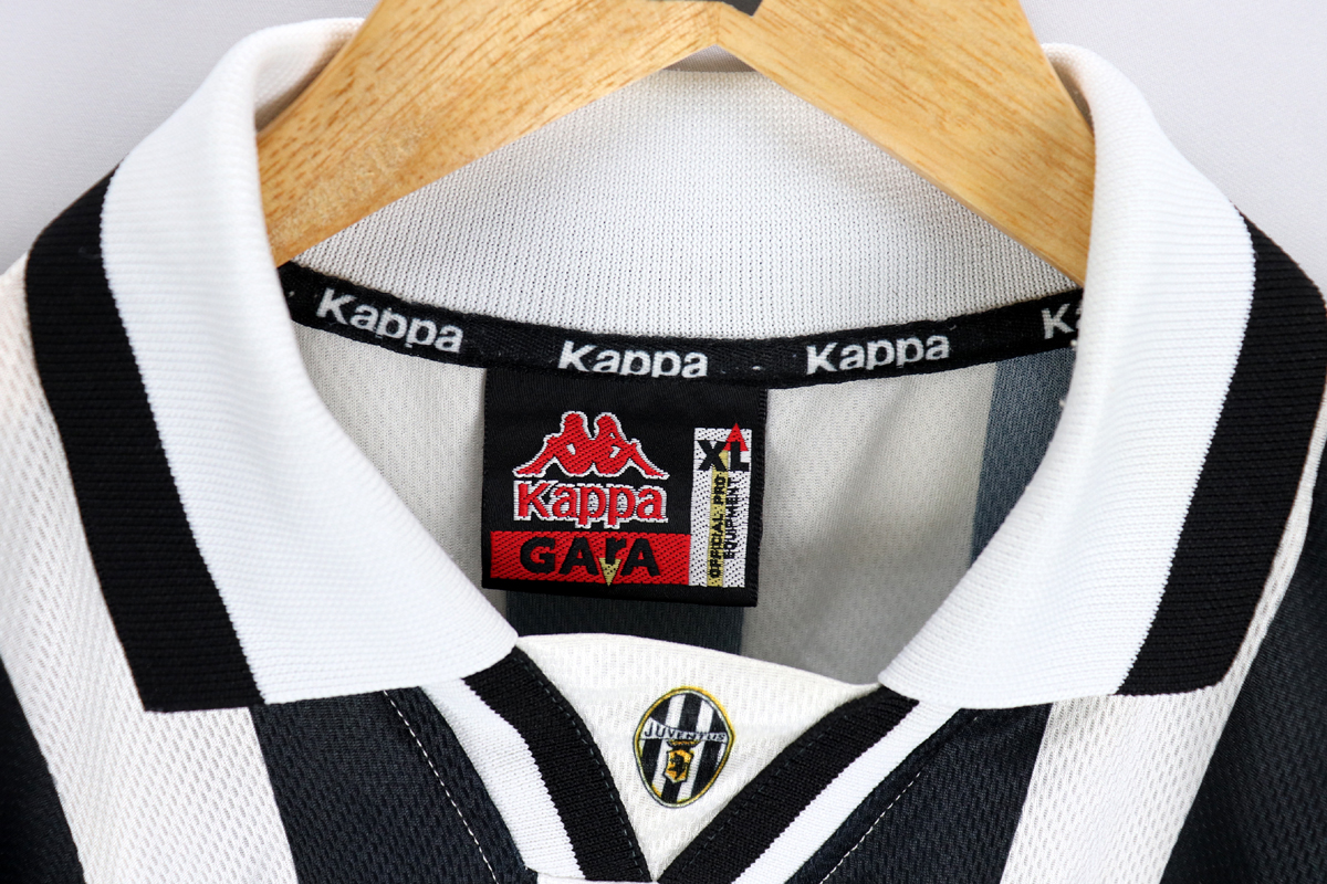 Note: Storica maglia Juventus indossata dai bianconeri nella trionfale stagione 1996-97 ( girone d'andata ), conclusa con la vittoria dello scudetto, della coppa intercontinentale e della supercoppa europea.