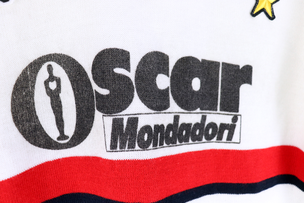 Dettagli:Logo RollyGo e stella cuciti. Sponsor Oscar Mondadori serigrafato, stampato in vernice. Maglia in eccellenti condizioni. Originale dell'epoca come tutte le maglie presenti sul nostro store