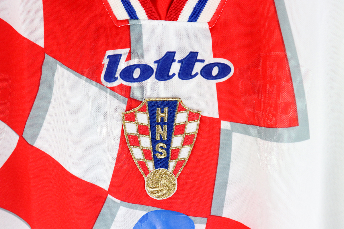 Dettagli: Stemma Croazia cucito. Logo Lotto in flock, applicato. Numero applicato. Maglia in eccellenti condizioni