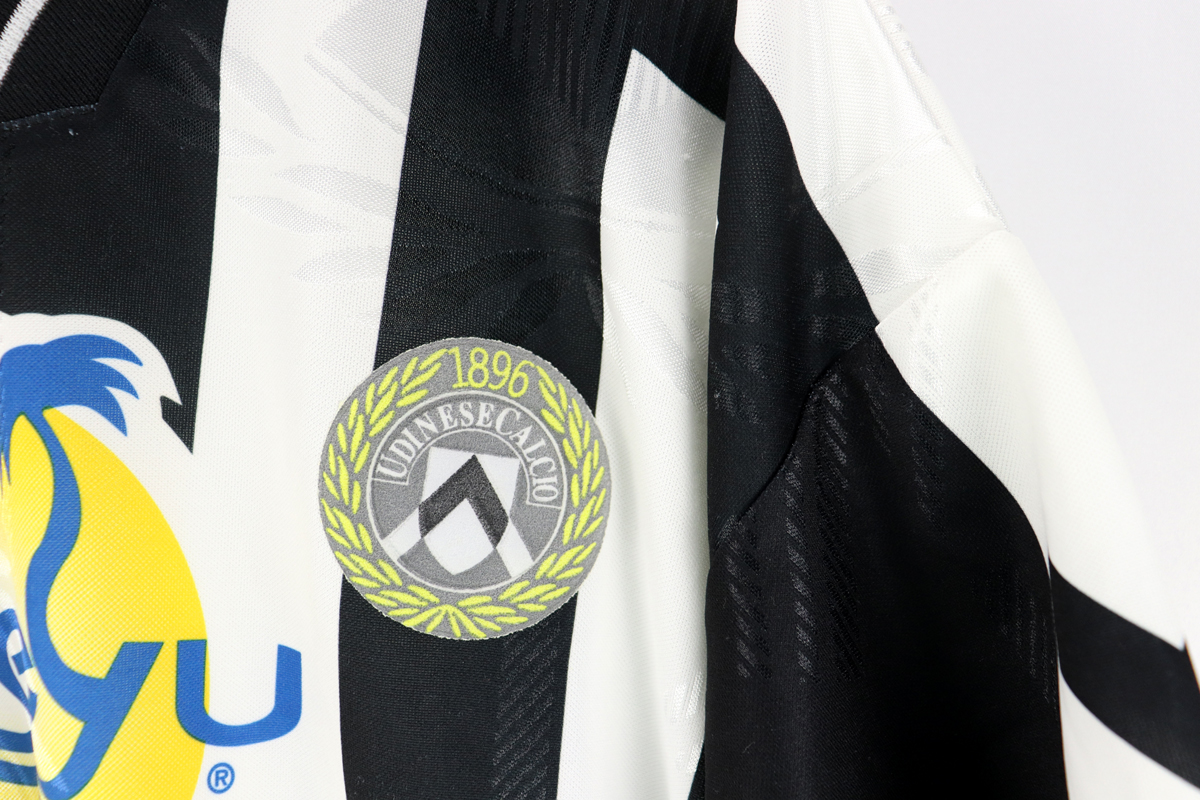Dettagli: Logo Hummel e stemma Udinese applicati. Sponsor Atreyu stampato nel tessuto. Maglia in eccellenti condizioni.