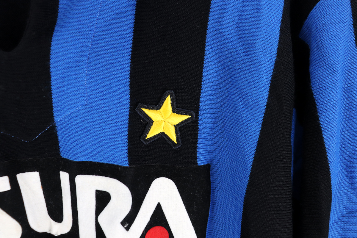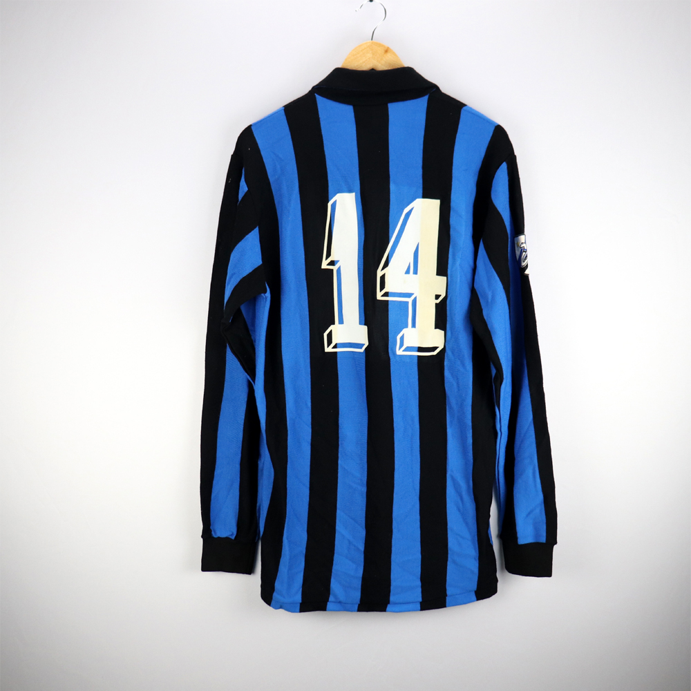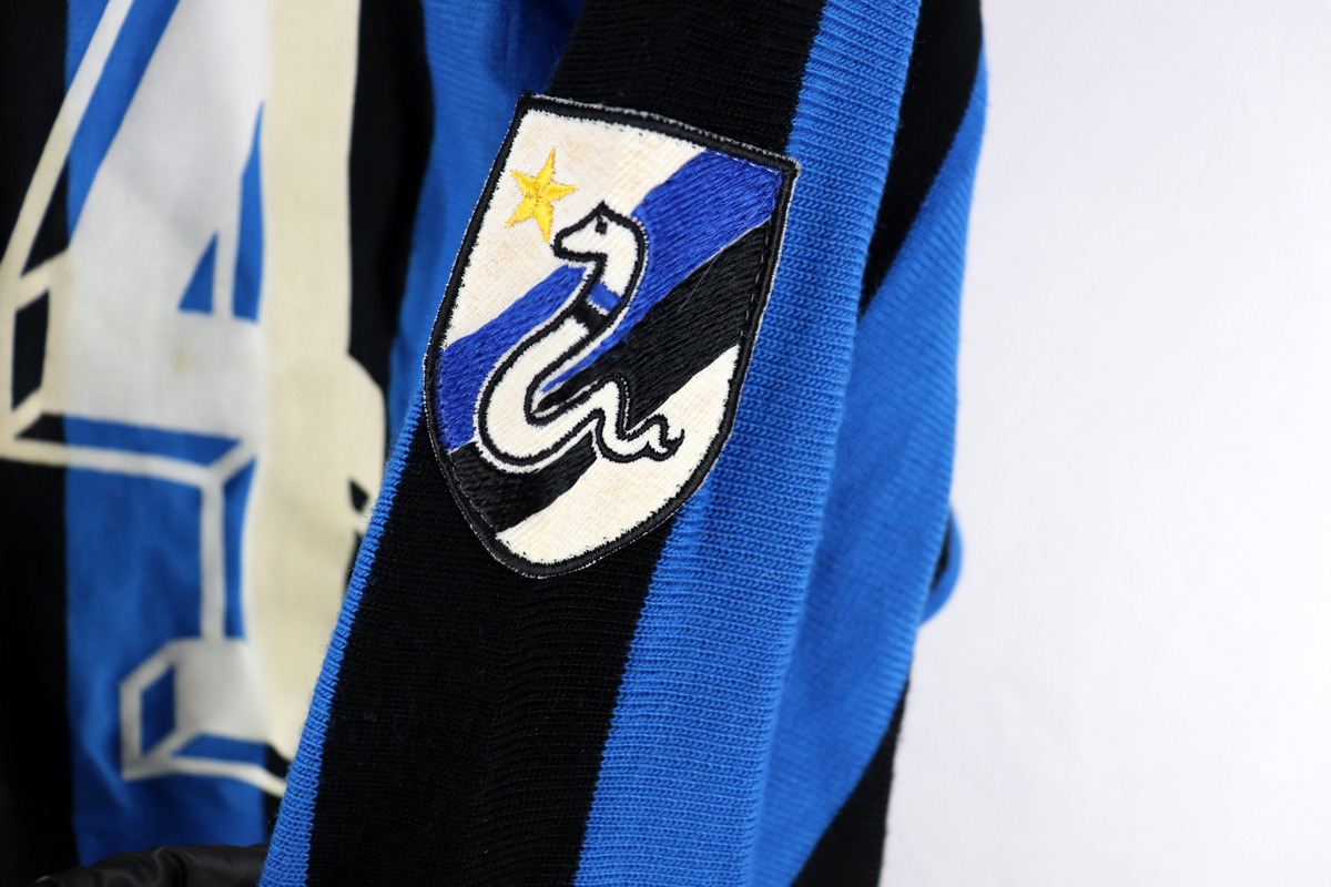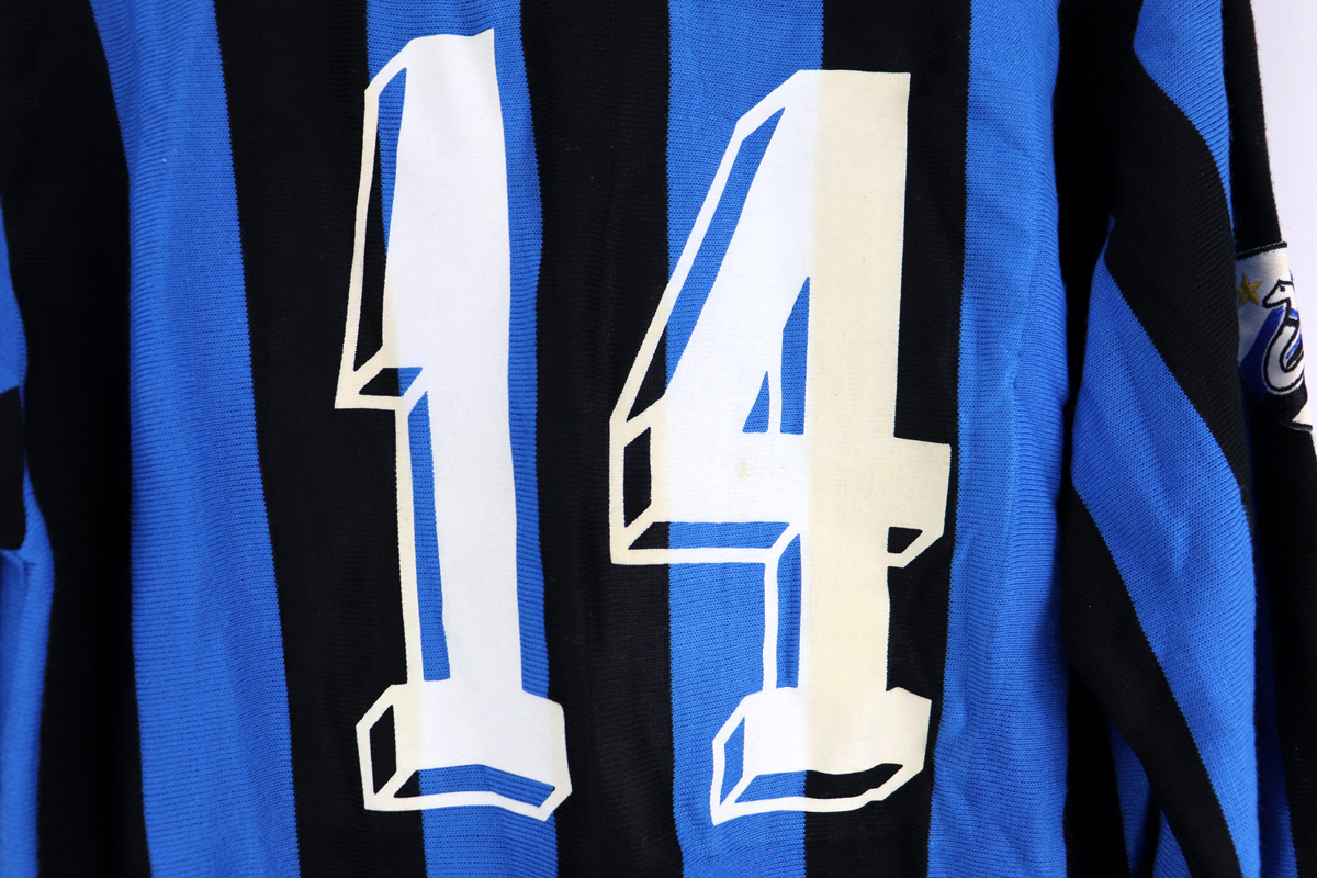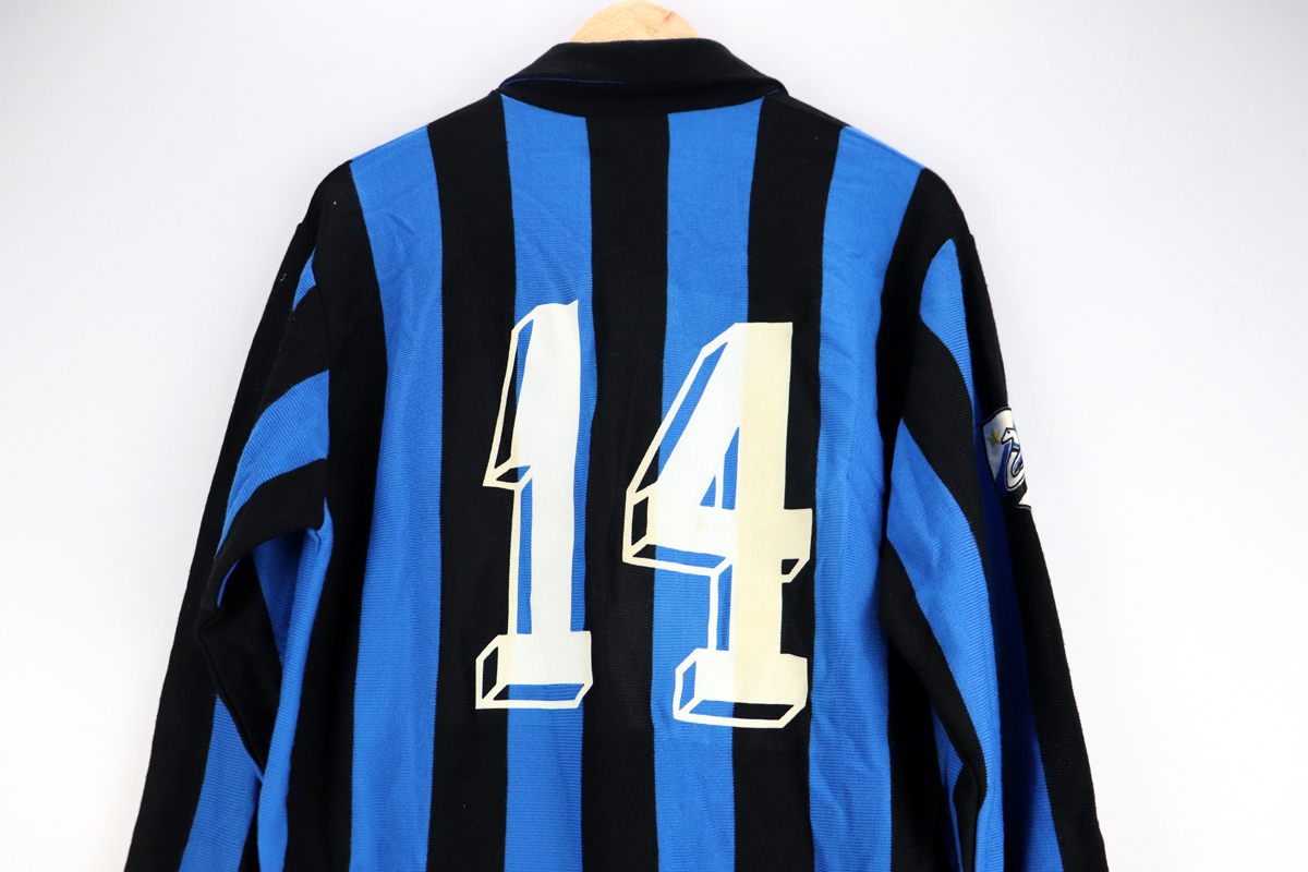 Dettagli: Stemma Inter FC sulla manica destra cucito. Logo Mec Sport e stella cuciti. Numero 14 applicato. Maglia Inter indossata nella stagione 1984/85. Il numero 14 è stato utilizzato prevalentemente da Franco Causio