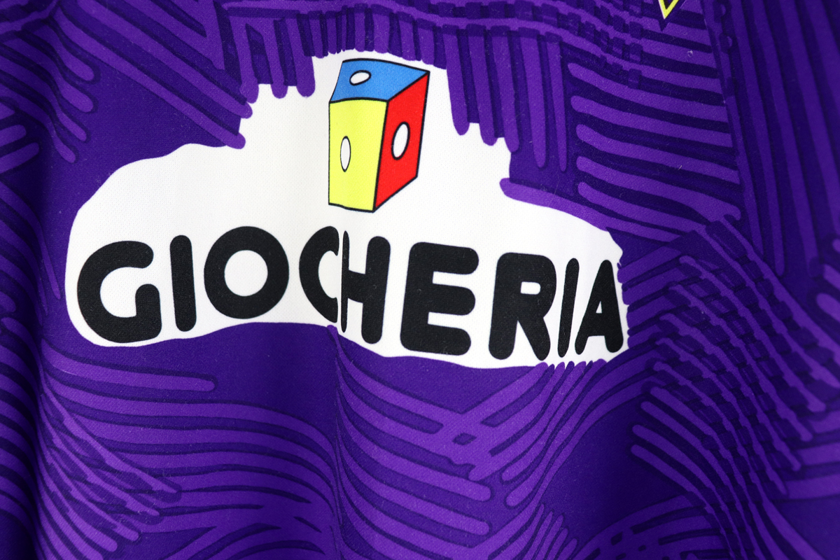 Note: Storica e rara maglia Fiorentina da trasferta dallo splendido design e con sponsor cult "Giocheria", utilizzata nella stagione 1991/92