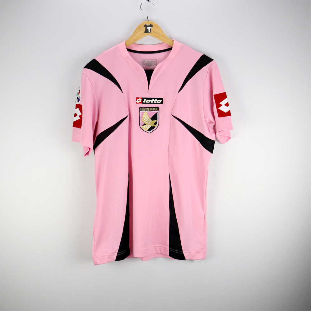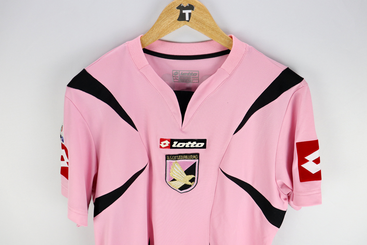 Dettagli: Logo Palermo ricamato. Logo Lotto applicato. Name set Tedesco 4 applicato. Patch lega Calcio applicata. Maglia in eccellenti condizioni. Taglia L. Maglia gara Palermo preparata/indossata per Giovanni Tedesco per la stagione 2006-07.
