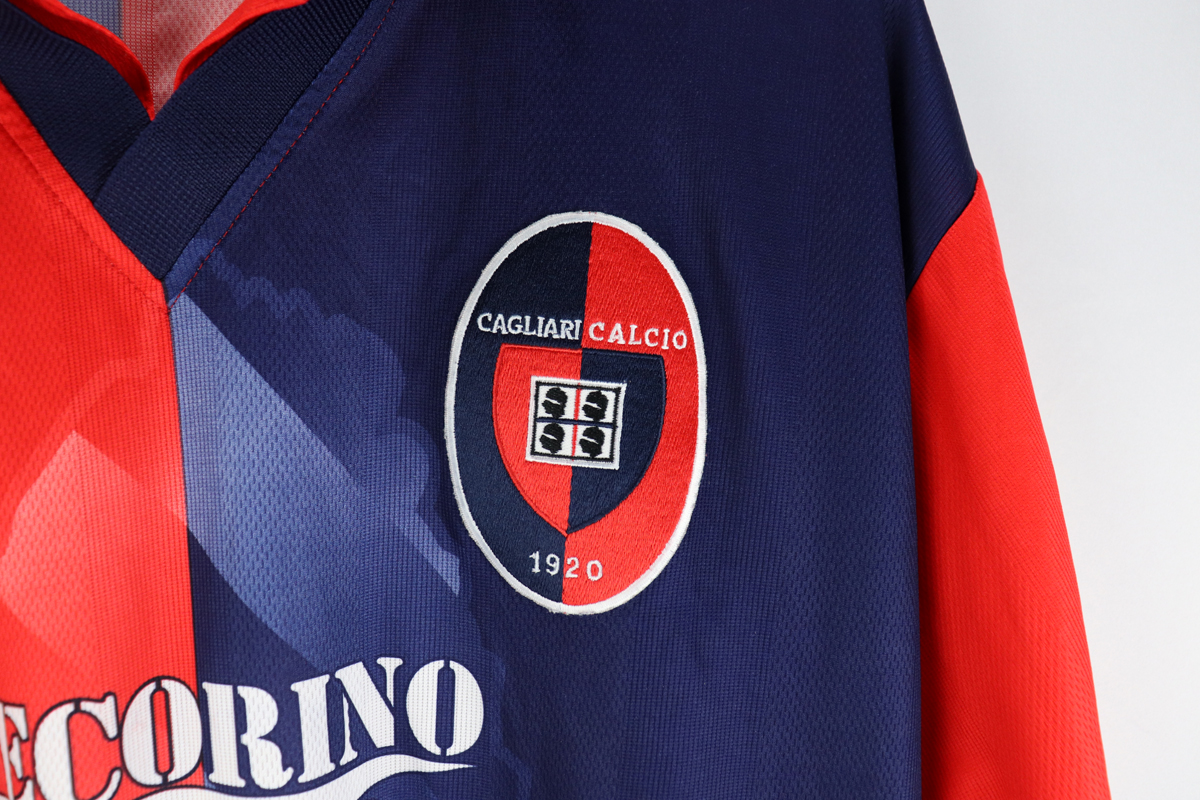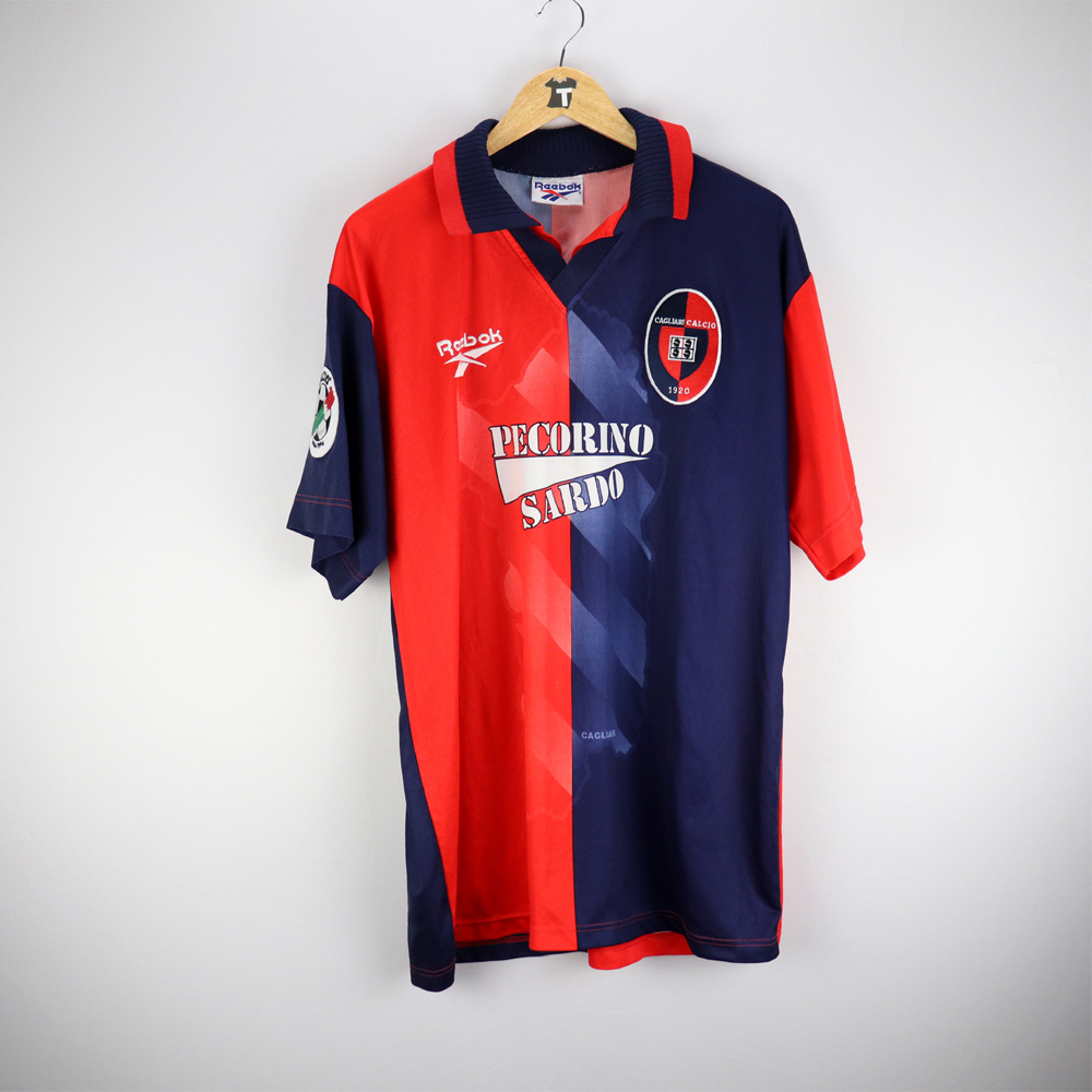 Note: Storica maglia con la quale il Cagliari partecipò al campionato di serie a 1996-97 terminando la stagione al 15° posto e retrocedendo in serie b dopo lo spareggio contro il Piacenza