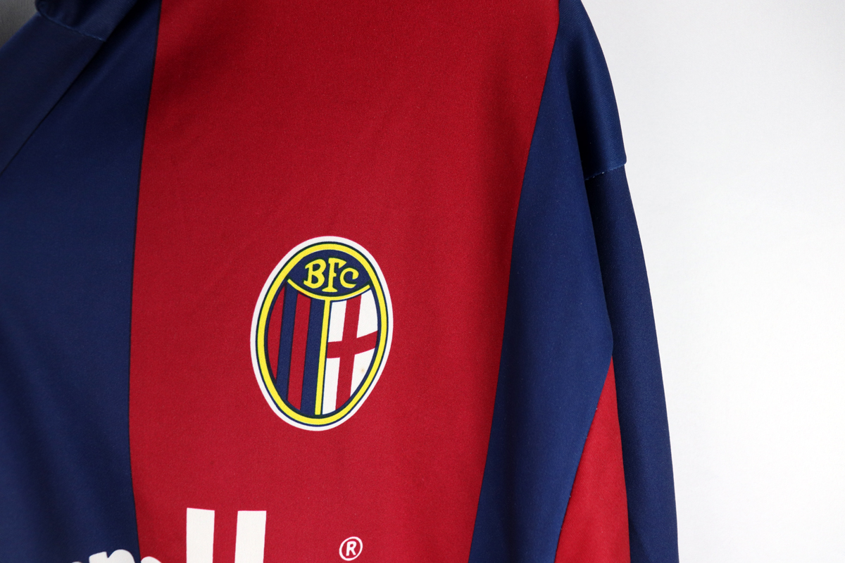 Dettagli: Logo Uhlsport e stemma Bologna stampati. Sponsor Mercatone Uno stampato. Maglia in eccellenti condizioni. Da ascella ad ascella 55 cm. Lunghezza 77 cm